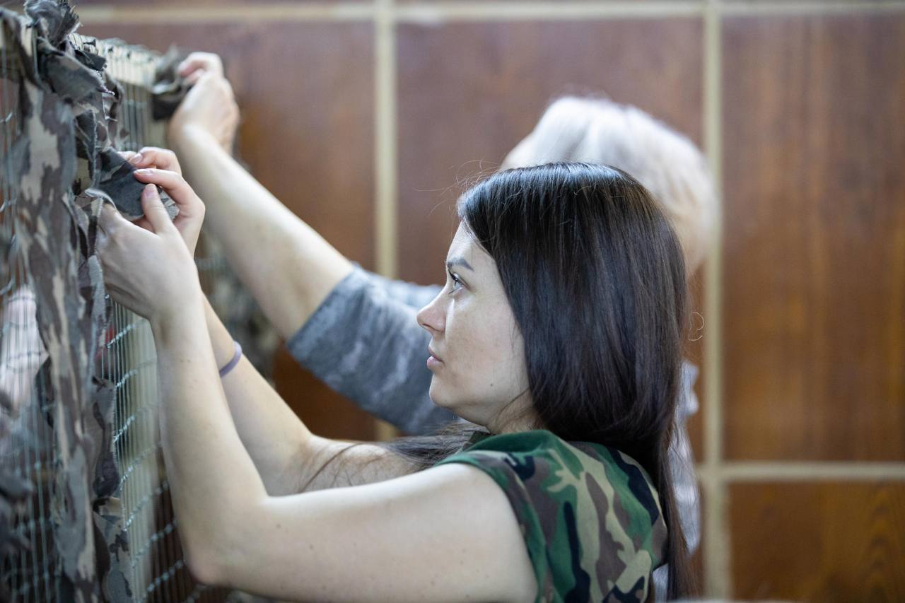 В волонтёрских пунктах неравнодушные горожане изготавливают маскировочные покрытия и окопные свечи для военных, которые находятся в зоне СВО.