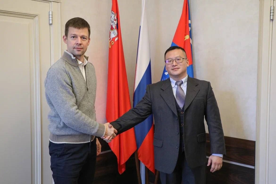 В Балашихе состоялась встреча секретаря местного отделения партии "Единая Россия" Сергея Юрова с представителем из китайского города Гуанчжоу, Цзян Чжентаем, чтобы обсуди