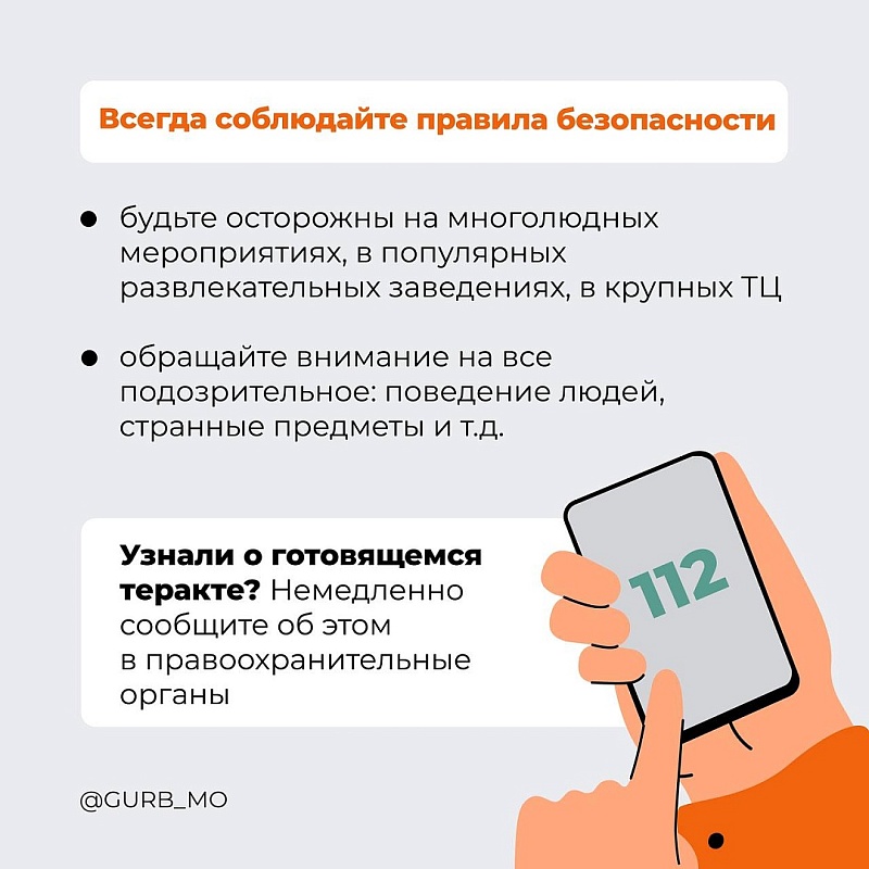 Главное управление региональной безопасности Московской области завершает серию рекомендаций при угрозе совершения террористического акта.