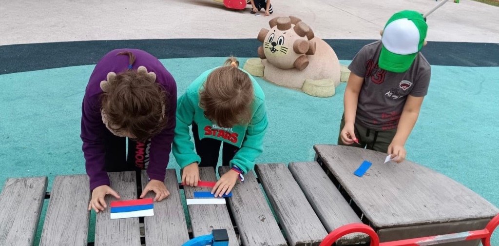 Участникам мероприятия рассказали когда появились первые флаги, какими они были, почему на флаге нашей страны именно так расположились цвета и что они символизируют, где постоянно поднят Государственный флаг Российской Федерации. Затем дети отвечали на вопросы викторины, отгадывали загадки о государственных символах, соединяли части пословиц о Родине, малыши собирали триколор из полосок бумаги белого, синего и красного цвета.