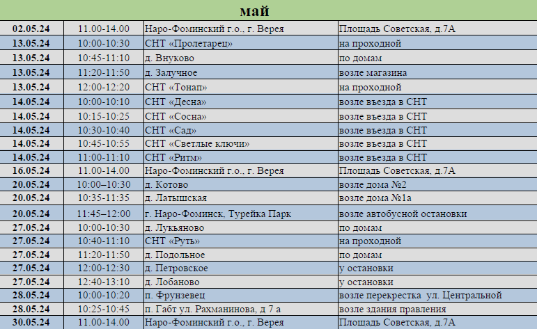 В рамках государственной программы в г. Наро-Фоминске и ближайших населенных пунктах составлен график выездов бригады мобильной вакцинации животных.