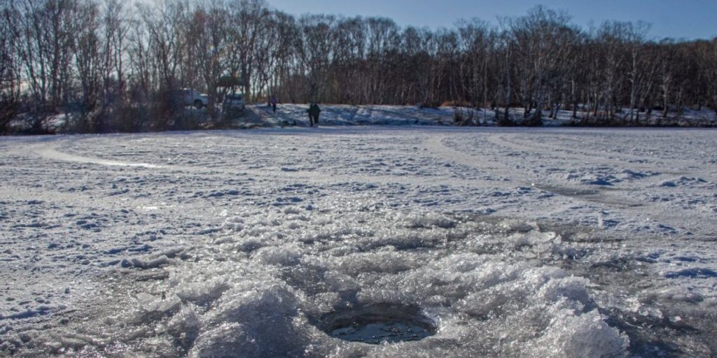 Прочность льда можно определить визуально: лед голубого цвета – прочный; белого – прочность его в 2 раза меньше; серый, матово-белый или с желтоватым оттенком – лед ненадежен.