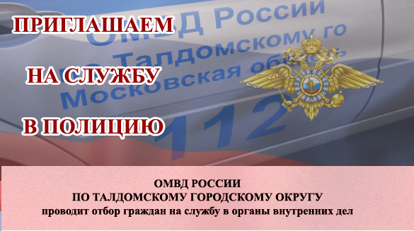 ОМВД РОССИИ ПО ТАЛДОМСКОМУ ГОРОДСКОМУ ОКРУГУ ПРИГЛАШАЕТ НА СЛУЖБУ В ПОЛИЦИЮ