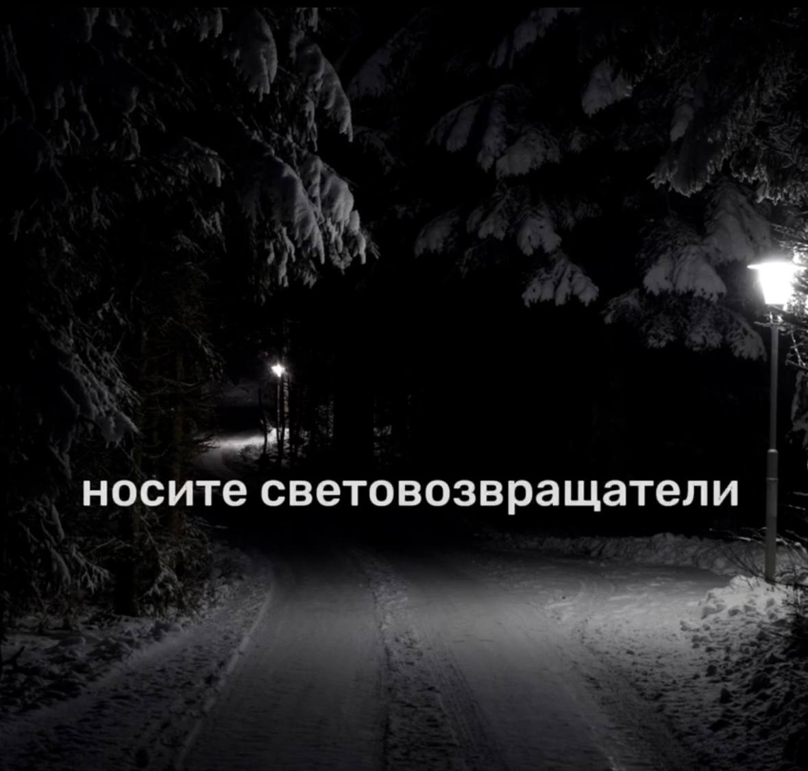 Обязательно носите световозвращатели (как минимум 4 элемента со всех сторон) или включайте фонарики! Даже если вы гуляете в черте города или посёлка, это поможет водителю увидеть вас и заблаговременно снизить скорость.