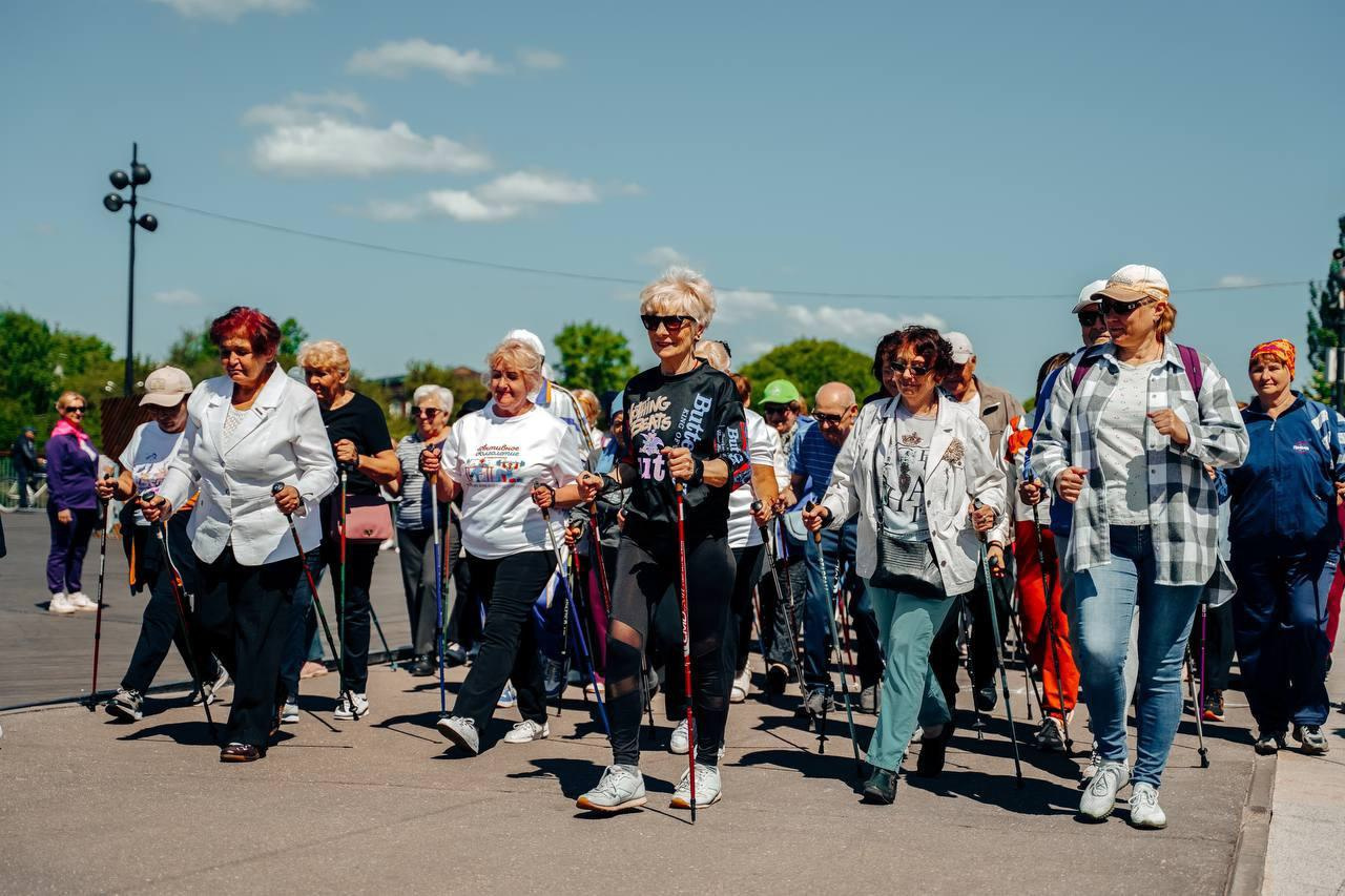 Масштабный марафон скандинавской ходьбы открыл фестиваль летних видов спорта. Более 250 активных пенсионеров вышли на дистанцию. Спортсменов, преодолевших дистанцию первыми, наградили медалями и почётными грамотами.