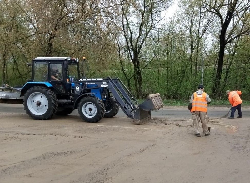 Сегодня проводилась уборка проезжей части, контейнерных площадок, опиловка сухих и аварийных деревьев. На детских игровых комплексах починили сломанные игровые элементы.