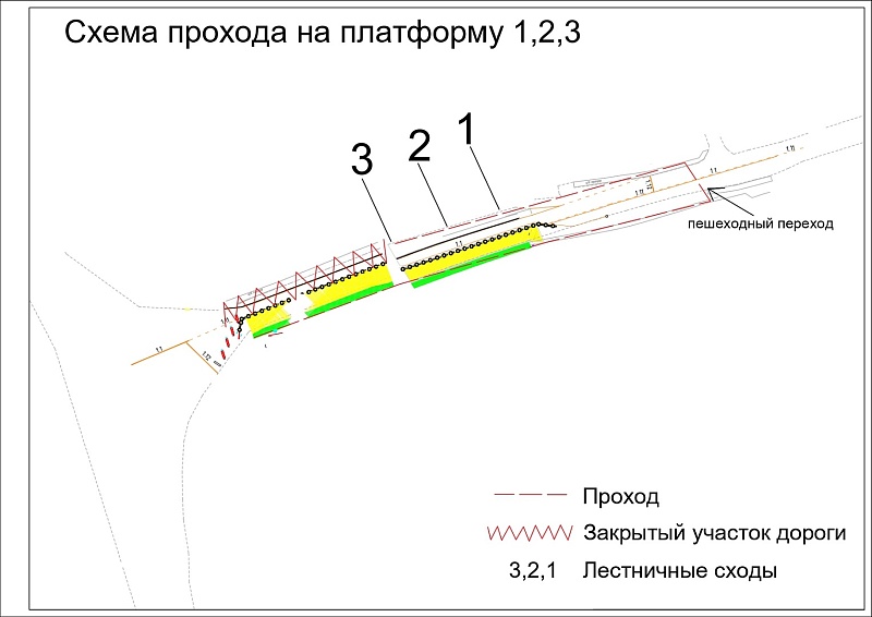 Проход на платформу №1, 2, 3 будет организован со стороны улицы Федотовской (смотрите схему).
