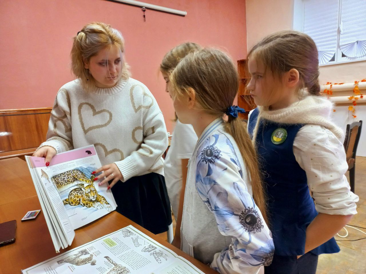Юные художники старательно рисовали ирбиса. У всех получились красивые и статные северные кошки.