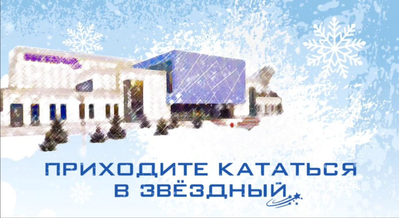 С завтрашнего дня и до конца новогодних каникул наша ледовая арена «Звёздный» открыта для массового катания. Берите коньки и приходите кататься всей семьей!