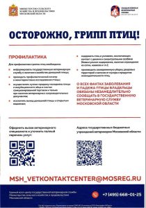 Обо всех случаях возникновения заразных болезней птицы или подозрения в их возникновении, а также о падеже птицы, несанкционированной торговле птицей и продукцией птицеводства просим незамедлительно сообщать в государственную ветеринарную службу Московской области.